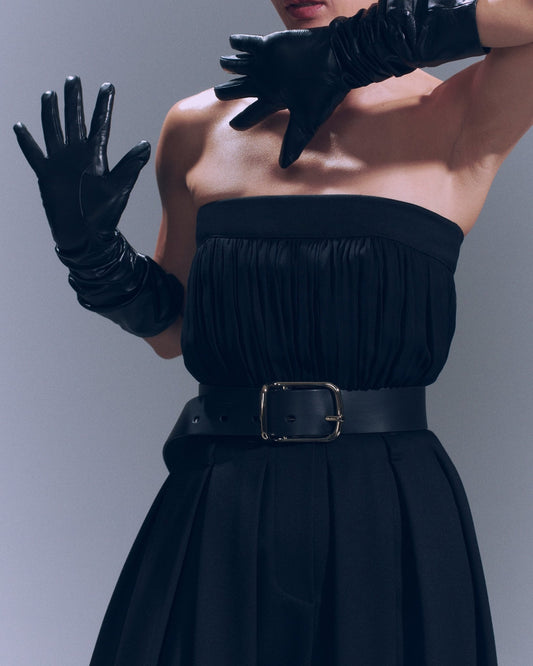 • Pleated Hip Gown with Buckled Straps - Ivory